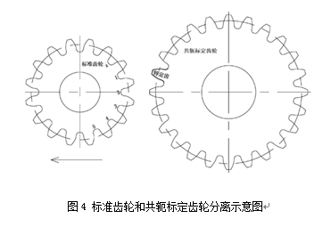 3、通過齒輪雙面嚙合測量儀中的滑板帶動標準齒輪與共軛標定齒輪分離,如圖4所示: