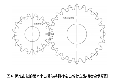5、共軛標定齒輪的特定齒與標準齒輪的第2個齒槽進行徑向綜合測量嚙合,如圖6所示: