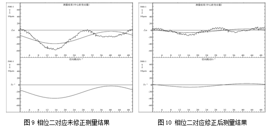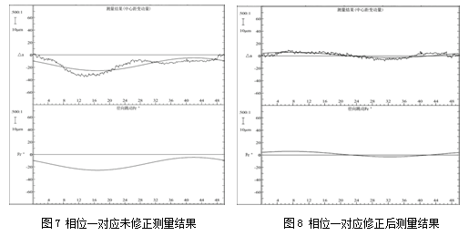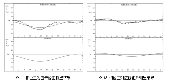 由表1和表2可以看出:修正前,徑向綜合總誤差Fi〞在三個相位誤差范圍為26 um,修正后,徑向綜合總誤差Fi〞在三個相位誤差范圍為2.5 um,比較后得出:修正后的徑向綜合總誤差Fi〞換相位測量結果精度在3 um以內,并且測量結果穩定,測量結果一致性顯著提高。
