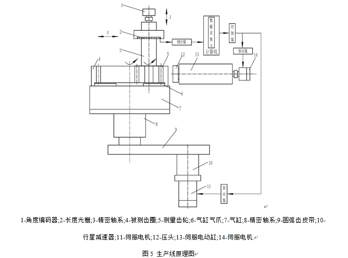 變速箱齒圈是重要的動力傳輸零部件。本項目所述的齒圈測量生產線是應江蘇馳翔精密齒輪有限公司對變速箱齒圈檢測的要求而設計。可實現在線測量齒圈徑向誤差(齒厚、徑向綜合偏差、徑向跳動等)及時效裂紋檢測等。本生產線以精密測量技術為基礎,基于雙面嚙合的快速特點,測量出齒圈徑向誤差,根據測量結果對被測齒圈進行實時機械校正;與此同時,探傷模塊對齒圈進行缺陷檢測,分選出有時效裂紋等嚴重缺陷的零件。實現了齒圈高質量流水線化生產,為解決齒圈大批量生產提供了新途徑。