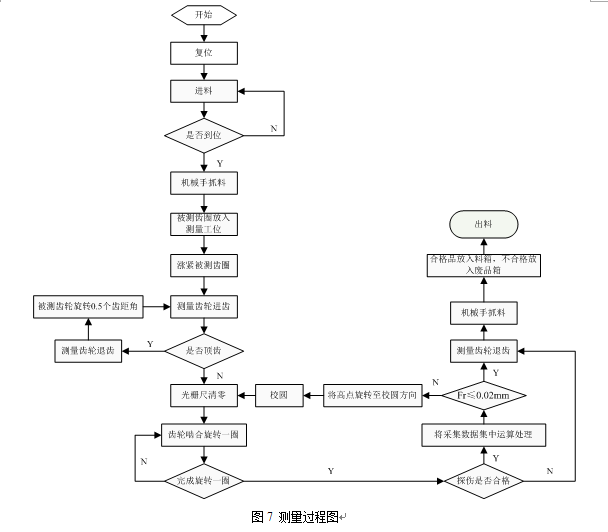 隨著汽車及摩托車齒輪制造業的快速發展,專業齒圈生產廠已越來越多。同時也引進了不少國外的先進齒圈制造工藝、技術、裝備。所生產產品的品種和質量基本滿足了國內中低檔轎車及摩托車的要求。但是,目前國內生產的齒圈測量儀器的測量功能單一,自動化程度低,測量速度慢。另一方面,汽車行業的發展加速了齒圈生產的節拍。上述傳統齒輪測量儀器難以滿足高質量齒圈生產節拍、快速檢測需求。齒圈薄壁類零件在熱處理過程中易發生變形,為提高零件利用率,需要對熱處理后的零件進行校正工序,以使零件滿足使用要求。在大批量生產條件下,如何能實現齒輪的高精度快速檢測,并結合校正功能、探傷檢測功能等,形成真正的自動測量生產線,有效降低廢品率,提高產品生產效率,已成為提升產品質量的關鍵。